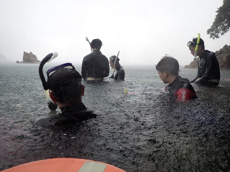 2019年9月3日(火)~8日(日)岐阜大学教育学部の「臨海実験法及び実験」が舞鶴水産実験所において実施されました。2日目はシュノーケリングによる磯採集でした。今年の学生は全体的に泳力があり、危なげない様子でしたが、終盤に雷雨に見舞われ、教育研究船「緑洋丸」に逃げ帰るというハプニングがありました。